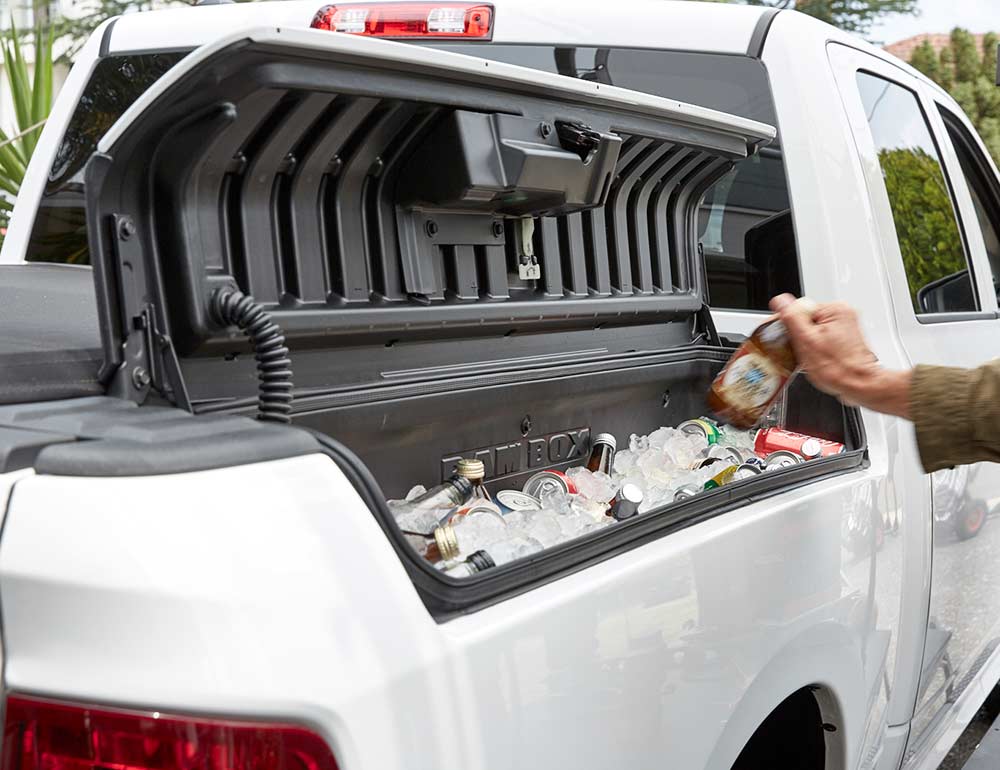Available on the V8 Hemi Laramie and Express Crew Cab variants, the class-exclusive RamBox® Cargo Management System is more than just a tool box. It features a lit, secure/lockable, durable and drainable storage system incorporated into the side rails of the truck tub. . The AllSecure® remote security system allows remote locking and unlocking of the RamBox®, as well as the rest of your RAM Truck with the push of a button. RamBox® vehicles come equipped with a cargo bed extender/divider, cargo bed rails with four adjustable tie-down cleats, as well as cargo box lighting and a tonneau cover.