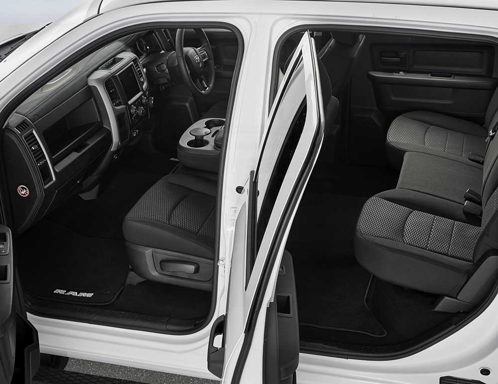 Standing out for exceptional style and value the Express is designed and built with performance and functionality at its core. With a durable interior that will withstand the toughest conditions, combined with a 5'7" cargo tub, the Express Crew is equipped with plenty of space to accommodate both work and play. The Express standard tub will take a full-size pallet with ease and you’ll still have space left over, thanks to the cargo tub length of 1,712mm, and a width between the wheel arches of 1,295mm. No corners have been cut, no sacrifices made. Just one smart package that’s been purpose-built with the flexibility to undertake any challenge. The RAM 1500 Express, will impress!